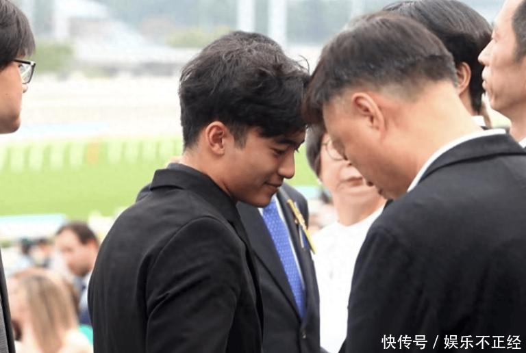 谢振轩当日选择的黑色西装造型,简约而不失格调。西装裁剪贴合身形,将他挺拔的肩膀与修长的身材完美展现出来。与正式西装搭配的白衬衫,让整体造型更具层次感,而脚上那双干净利落的皮鞋,则在细节上凸显成熟气息。